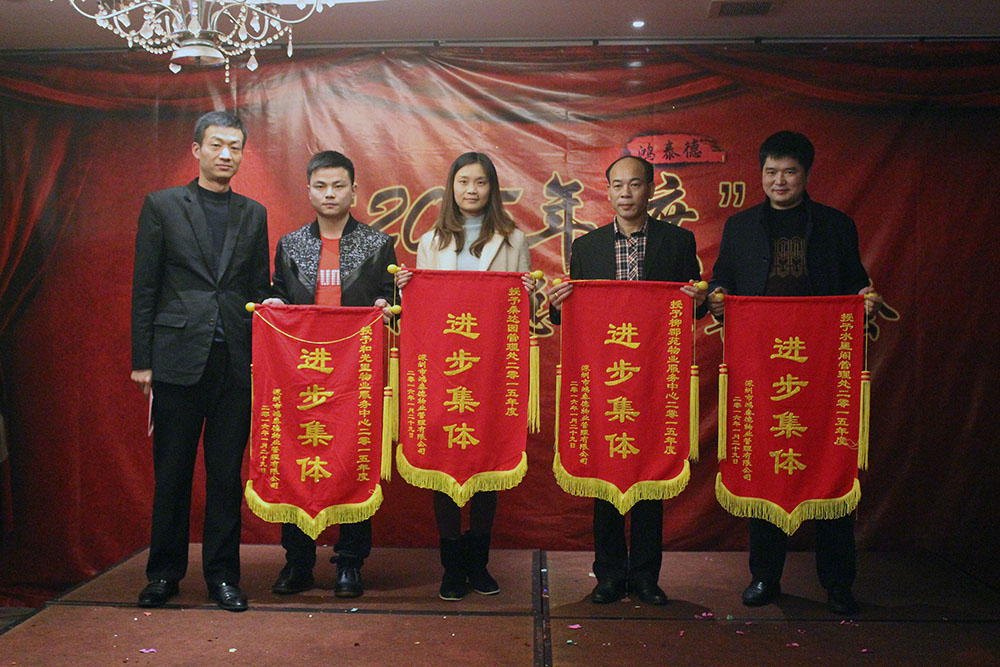 福羊辞旧岁,金猴踏春来!时光荏苒,岁月更迭。告别难忘的2015,迎来全新的2016。我公司于1月29日在华强广场3楼华宴大酒店隆重召开了“携手同行,共创未来”为主题的鸿泰德物业2015年度总结暨表彰大会。公司总部全体员工、外地项目代表及特邀嘉宾参加了本次活动。鸿泰德人齐聚一堂,共同庆祝公司2015年取得的佳绩,并展望2016再创辉煌。